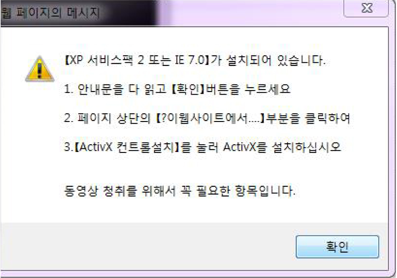ActiveX 컨크롤 설치 프로그램은 이미 설치한 상태이며, 페이지 상단에 다시 뜨지도 않습니다.