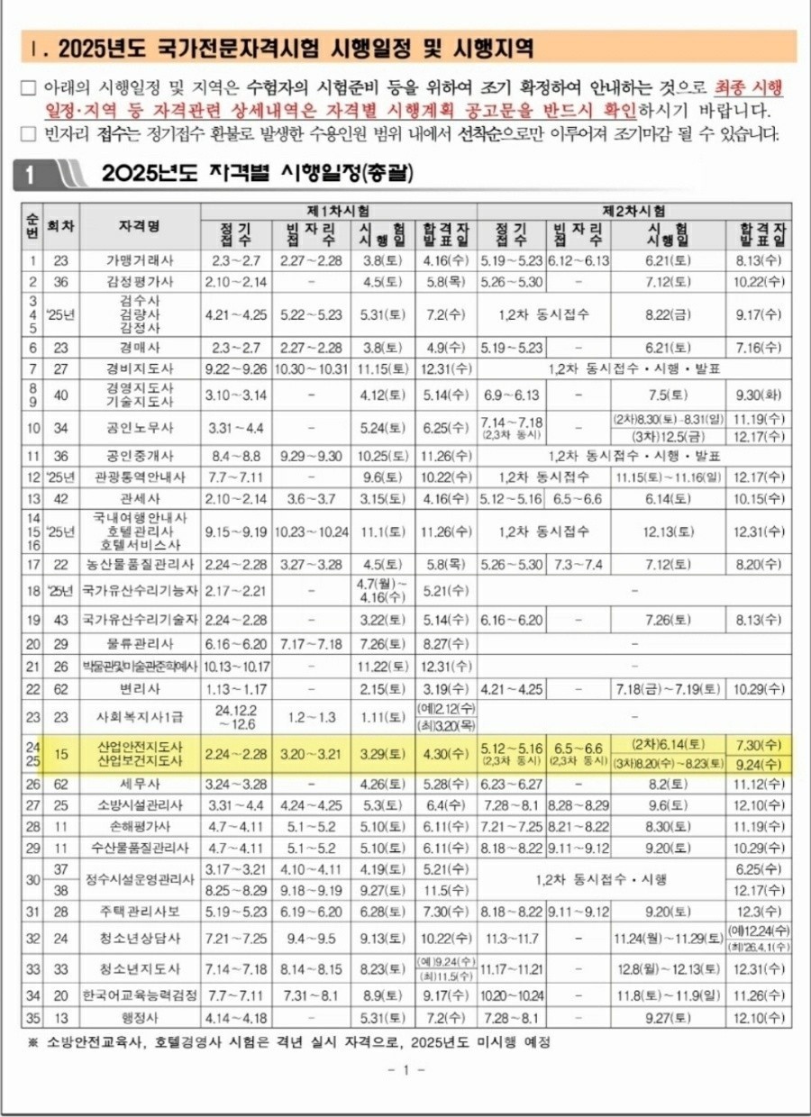 2025년도 국가전문자격시험 시행일정 사전공고